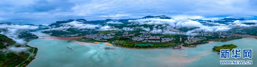 雨后云霧繚繞的江畔小城(10月6日攝)。新華網(wǎng)發(fā)(曾三東 攝)