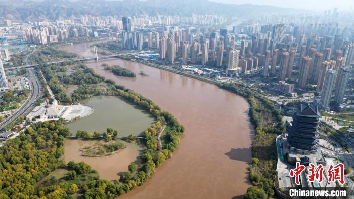 2024年10月31日,黃河蘭州段兩岸的斑斕秋色。 (無人機(jī)照片) 九美旦增 攝