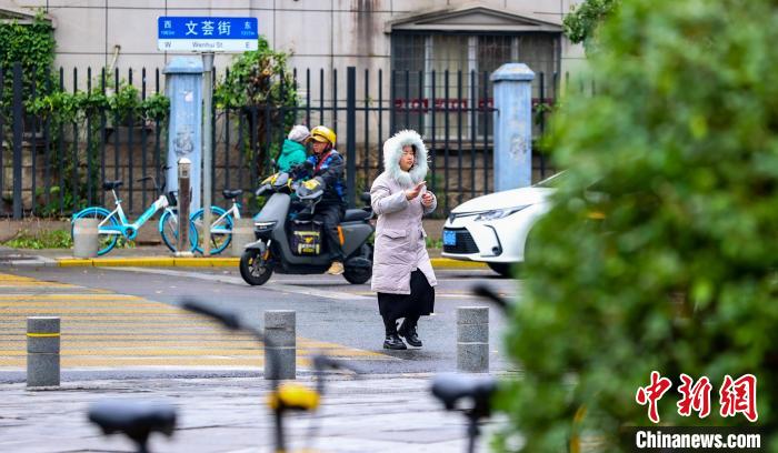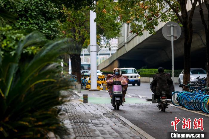 11月25日,市民在街頭出行。當(dāng)日,武漢受寒潮天氣影響,氣溫下降明顯。武漢市氣象臺24日18時27分發(fā)布寒潮藍色預(yù)警信號,受較強冷空氣影響,預(yù)計24日至26日,武漢最低氣溫降幅達7℃~9℃。中新社記者 張暢 攝