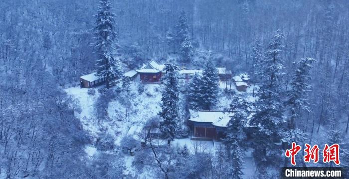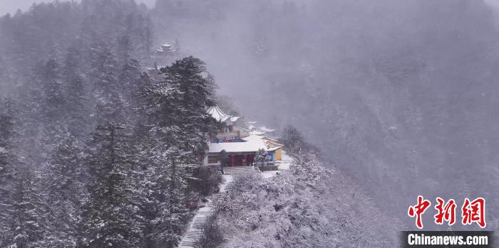 圖為雪海中的古剎。金光煜 攝