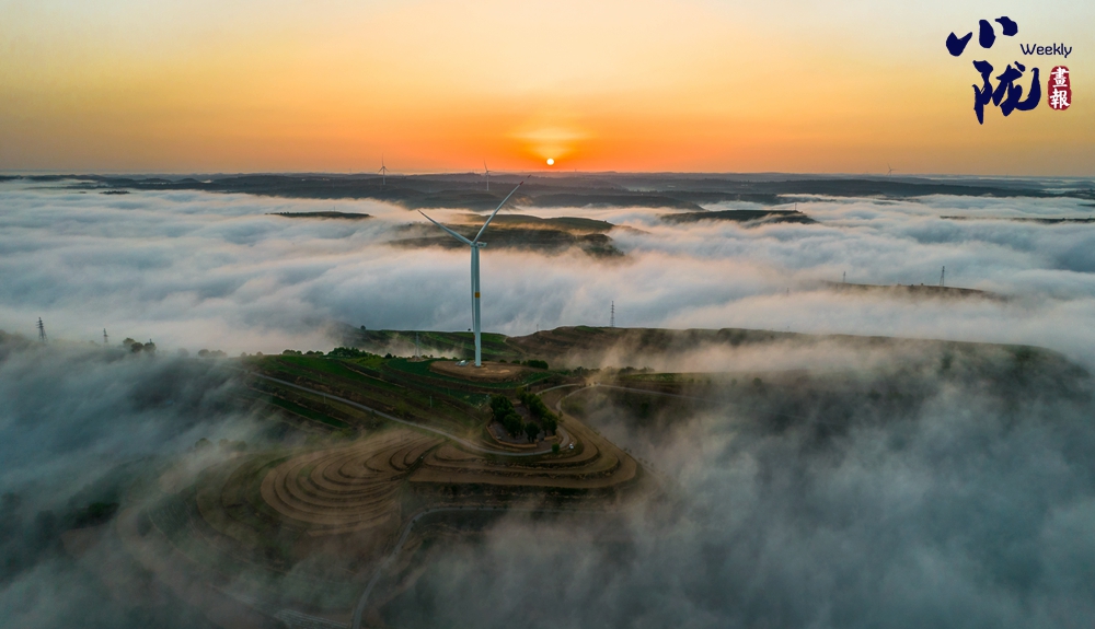 云霧如海浪般向四周漫延,呈現(xiàn)出別樣的霧海景觀,聳立在山川梁峁間的風(fēng)力發(fā)電機(jī)隨風(fēng)律動,成為當(dāng)?shù)匾坏廓?dú)特的風(fēng)景。