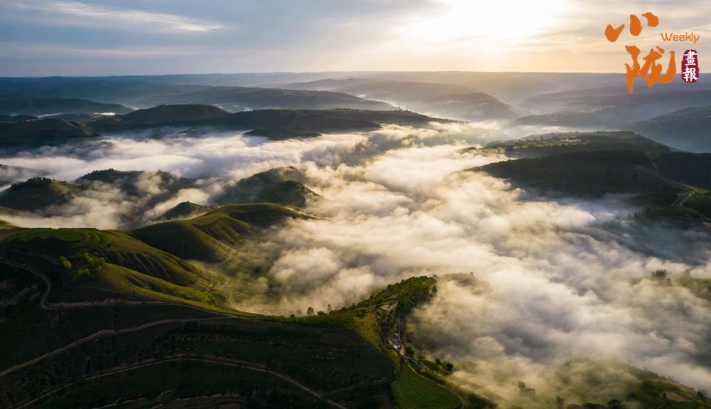 連綿起伏的山巒在云霧中若隱若現(xiàn),霧氣彌漫將溝峁山梁籠罩,形成一幅水墨風(fēng)光畫。