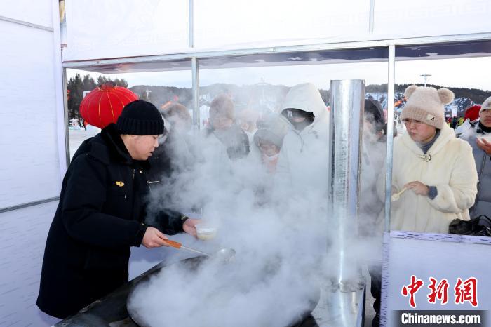 12月21日,中國大興安嶺漠河第十五屆冬至文化節(jié)在漠河市北極村啟幕。圖為游客品嘗鮮美的魚湯?!∩厶炖?nbsp;攝