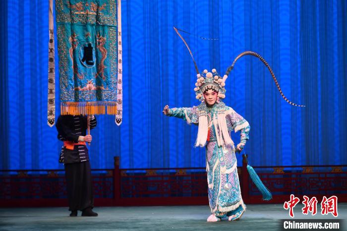 30日晚,“閩臺共譜梨園曲·不負(fù)韶華正青春”兩岸傳統(tǒng)文化交流系列活動在福州鳳凰劇院舉辦。圖為臺灣青年演員楊瑞宇在京劇《扈家莊》里飾演扈三娘。中新網(wǎng)記者 呂明 攝