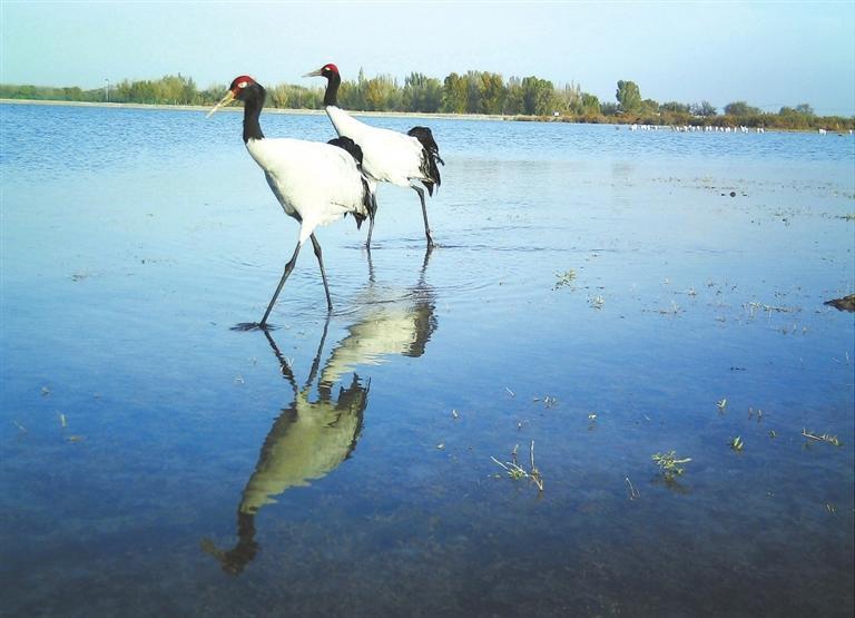 黑頸鶴在甘肅安西極旱荒漠國家級(jí)自然保護(hù)區(qū)棲息。新甘肅·甘肅日?qǐng)?bào)通訊員 徐媛媛