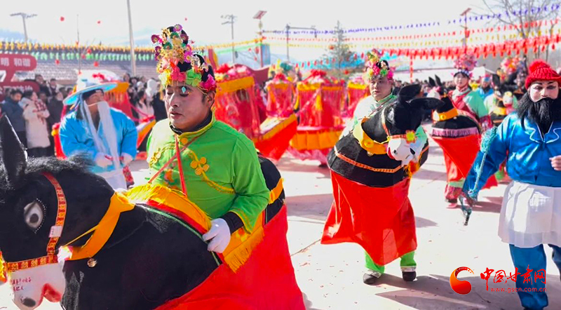 春節(jié)期間,華亭市各曲子戲班的演出由農(nóng)村的廣場到家庭院落,縣城的機關單位到大街小巷,隨處可見。曲子戲通常以吹拉彈唱、說春遛丑等角色,形成大場子、小場子、跑場子三種演唱形式,表演以極具華亭風情的念唱、秧歌小調(diào)、獅子旱船、民間舞蹈為主。生老凈丑競相登場,文武場面與大戲不相上下,表演風格獨特,濃濃的鄉(xiāng)土味瞬間會勾起人們對家鄉(xiāng)的熱愛之情。
