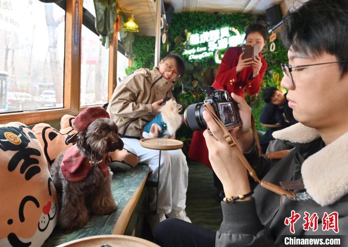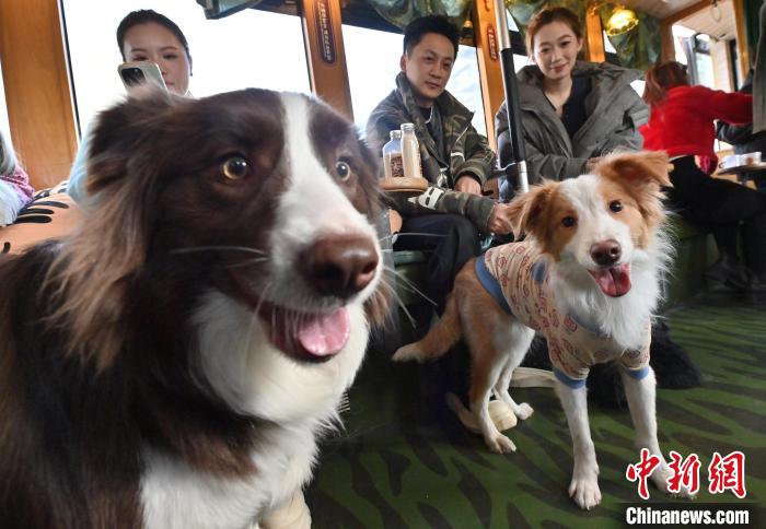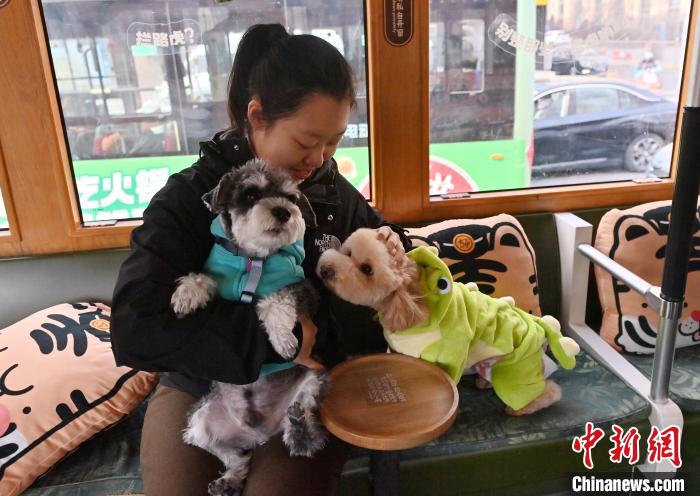 3月16日,吉林長春,寵物和主人在車廂內看風景。近日,長春54路文旅東北虎專列專為寵物主人們推出攜帶寵物乘車的專屬服務,寵物主人可在特定時間帶領寵物乘車。車廂內,萌寵們或坐或臥,與主人親密互動,仿佛在進行一場別開生面的派對。中新社記者 張瑤 攝