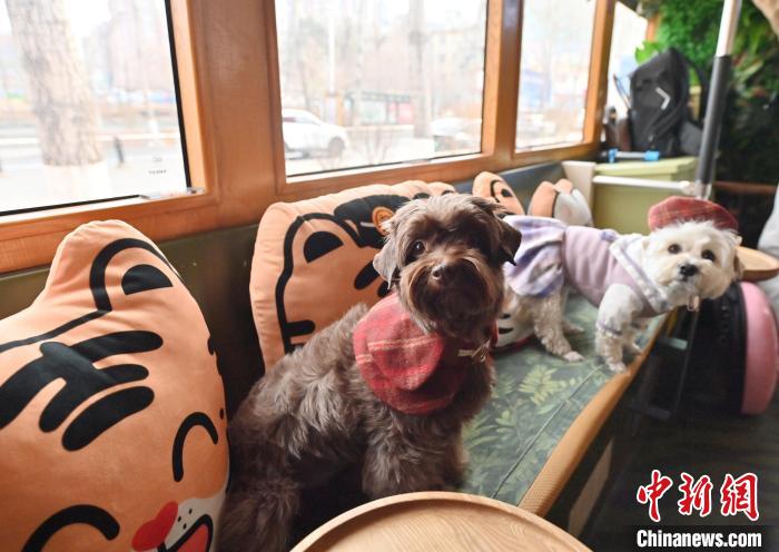 3月16日,吉林長春,寵物們在車廂內親密互動。中新社記者 張瑤 攝