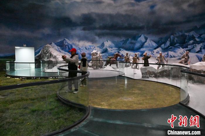 3月1日,迪慶紅軍長征博物館內(nèi)展出的“爬雪山、過草地”互動景觀吸引游客拍照。李嘉嫻 攝