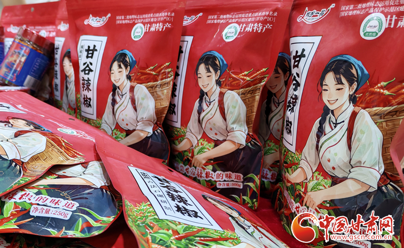 記者在“甘味”展館看到,甘谷辣椒展位前人頭攢動,熱鬧非凡。展位上,一排排包裝精美的甘谷辣椒產(chǎn)品整齊擺放,辣椒絲、辣椒面、辣椒段、辣椒串、油潑辣子以及多款辣椒禮盒琳瑯滿目,吸引了眾多消費者的目光。