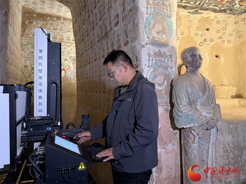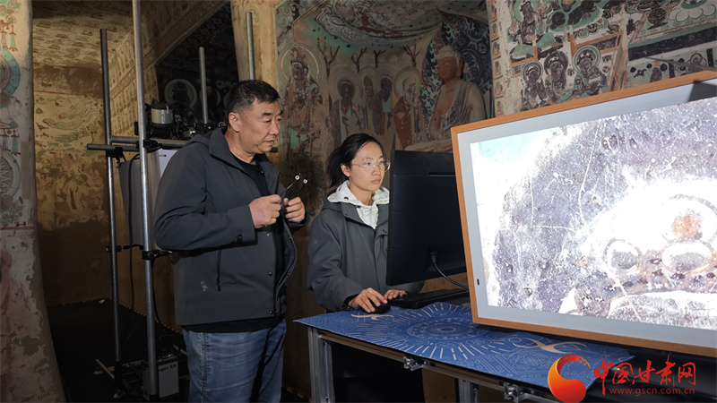 敦煌研究院研究數(shù)字敦煌資深攝影師喬兆福和同事就在敦煌拍壁畫(huà),留下千年壁畫(huà)色彩,匯聚數(shù)字洞窟資料。