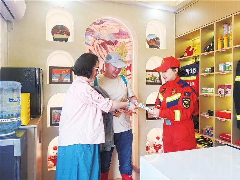 敦煌市消防救援大隊“九色鹿”女子服務隊在鳴沙山月牙泉景區(qū)開展消防安全宣傳活動。