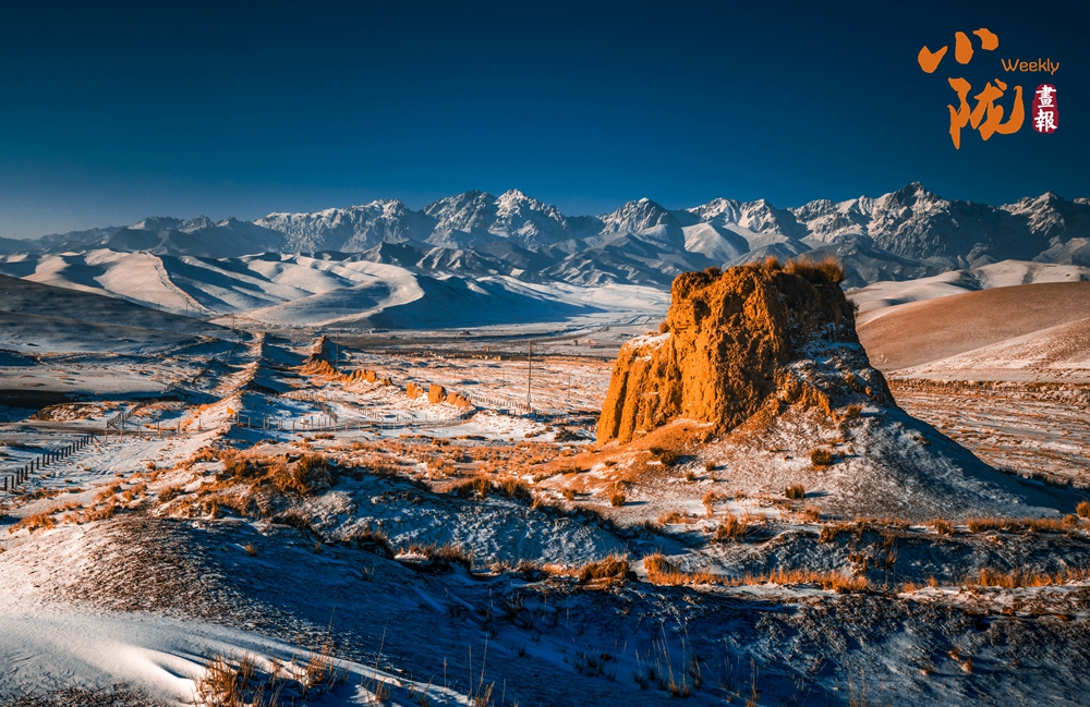 潔白的馬牙雪峰在遠(yuǎn)處閃爍著冷冽的光芒,巍峨而孤高;而眼前,明漢長(zhǎng)城的夯土墻體在陽(yáng)光下泛著溫暖的土黃,宛若大地的血脈。這一冷一暖在此相遇——一端是自然雕琢的冰晶詩(shī)篇,一端是人類寫就的黃土史詩(shī),共同構(gòu)成一幅跨越千年、連接天人的壯闊畫卷。