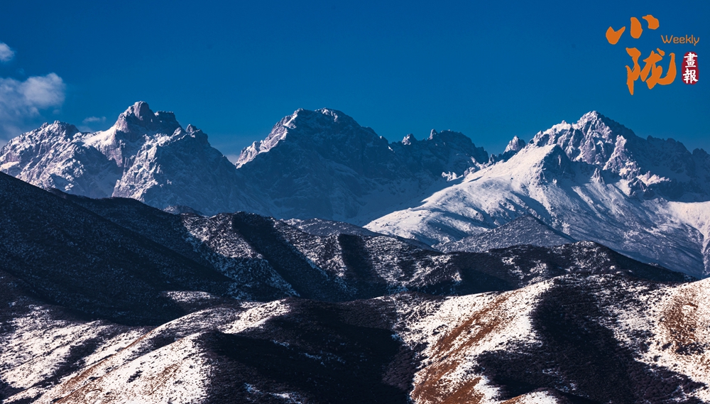 馬牙雪峰披著一身無(wú)瑕的純白,靜立于層疊起伏的山谷之間。高處是皚皚雪冠,低處是深谷幽影,這一高一低,一遠(yuǎn)一靜,在視覺(jué)與意境上形成了完美的平衡。