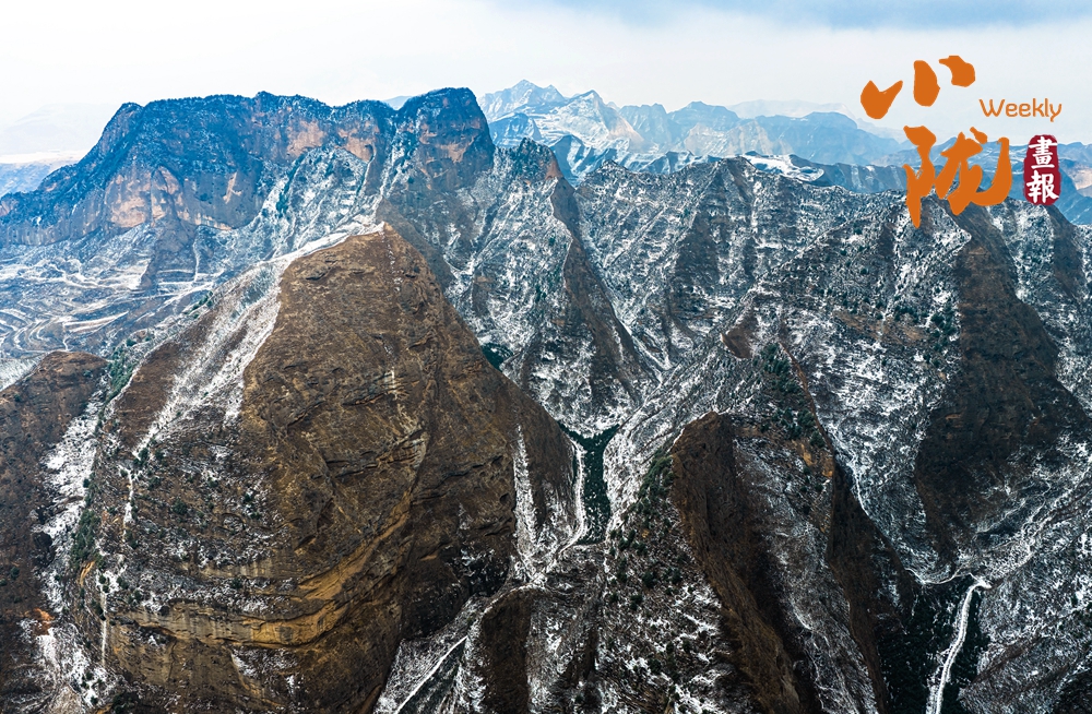 雪落在陡峭的崖壁上,落在圓潤的山頂上,落在深邃的溝壑里。紅的更紅,白的更白,仿佛是大地披上了婚紗,要在春天里完成一場盛大的婚禮。