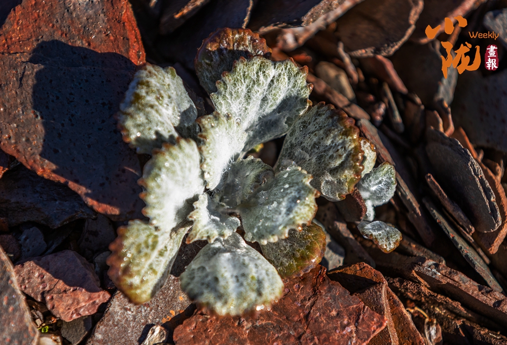 抱莖葶藶,屬于十字花科葶藶屬的墊狀高山植物。它呈緊湊的團(tuán)塊狀,葉片密集,表面覆有白色絨毛,頂端開(kāi)有細(xì)碎的黃色小花,生長(zhǎng)在碎石環(huán)境中,這種形態(tài)能幫助它適應(yīng)高海拔的低溫、強(qiáng)風(fēng)與強(qiáng)紫外線環(huán)境,減少水分流失。