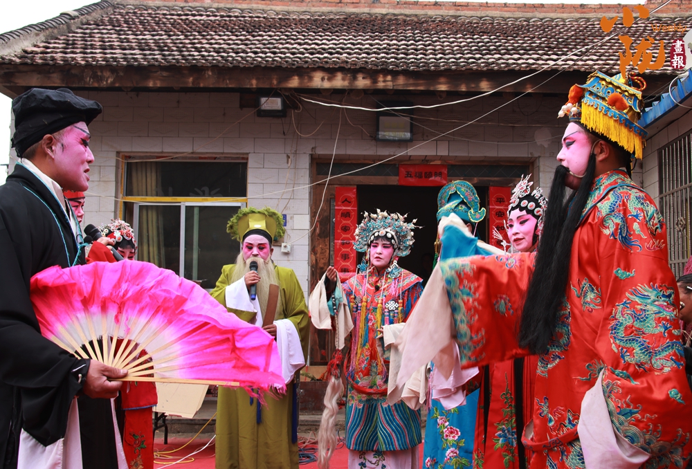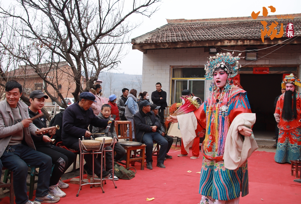 民居門口的舞臺上,多位扮相精致的演員依次亮相,或持扇或執(zhí)巾,唱腔婉轉(zhuǎn)、身段靈動。臺下村民圍得水泄不通,不少人舉著手機定格精彩瞬間,伴奏的鑼鼓弦樂聲里,滿是濃郁的鄉(xiāng)土氣息。