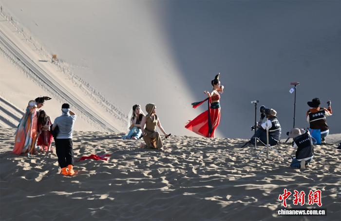 原標題:甘肅敦煌鳴沙山下古風服飾旅拍成“留量”